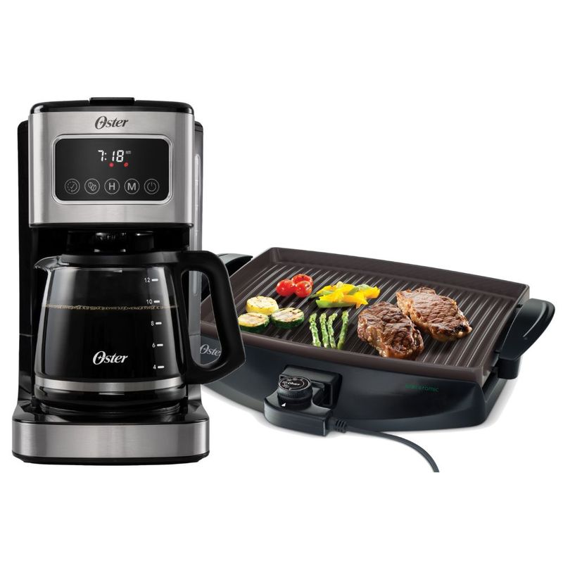 Cocina y HogarKitsKit Parrilla eléctrica Bioceramic® Oster® y Cafetera programable de 12 tazas con pantalla táctil Oster®