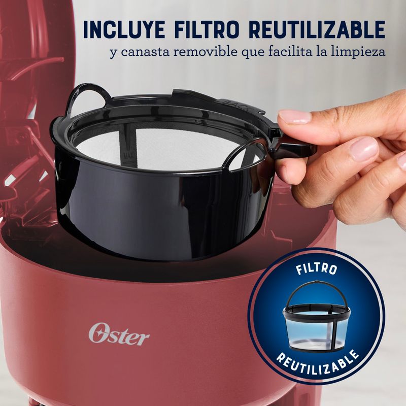 Oster Cafetera, de 5 Tazas de Capacidad, con Filtro Reutilizable, Botón con Luz de Encendido y Apagado, Color Rojo, BVSTDCS51R